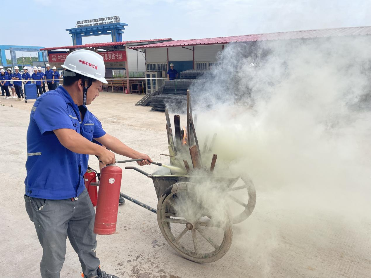 本次演练预设场景为因作业现场用电负荷较大,发生用电火险,导致材料堆场突然冒起浓烟并伴有火光。项目部立即启动《消防事故应急预案》,召集所有小组人员就位,各司其职,紧密配合,积极展开疏散抢救工作。演练结束后,项目部进行了火灾事故教育及演习总结,分析火灾起因,吸取火灾教训,组成事故调查组进一步查明事故发生原因,落实责任。