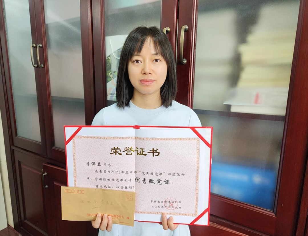 主讲人李伟兰获得市委组织部颁发的荣誉证书及奖金