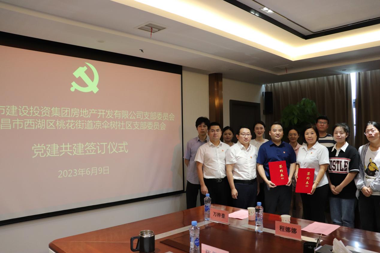 为积极探索创新党建工作新模式,探索联合党建新路径,努力形成组织共建、资源共享、发展共商的党建工作新局面,6月9日,南昌市建设投资集团房地产开发有限公司党支部与南昌市西湖区桃花街道凉伞树社区党支部举行了党建共建签约仪式。公司党支部委员、总经理万勇林,党支部委员、副总经理何强科,总经理助理吴瑞雪、技术顾问陈保福出席,双方单位共16名党员参加。