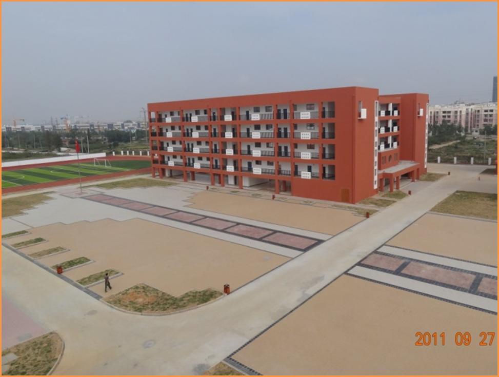 该工程位于高新开发区火炬六路以南,京东大道以西,占地面积50亩,建筑总面积为20340㎡,包含1#教学楼、2#教学楼、办公楼、食堂4栋房屋的土建及装饰工程,以及学校场内外给排水及管道安装工程、电气安装工程、操场、篮球场、运动场、广场、道路、门卫、围墙等市政配套工程。建设单位为南昌高新开发区管委会、南昌城投集团公司,设计单位为南昌市建筑设计研究院有限公司,监理单位为南昌高新工程咨询有限公司。合同造价3500万元,合同工期为198天。